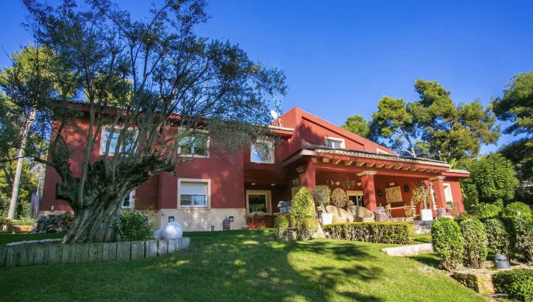El exterior de la vivienda es simplemente espectacular. Su fachada en tonos cálidos se integra armoniosamente con el entorno natural. En el amplio jardín, encontrarás zonas ajardinadas perfectamente cuidadas, un majestuoso olivo que aporta carácter y una piscina privada, ideal para disfrutar en los días soleados.